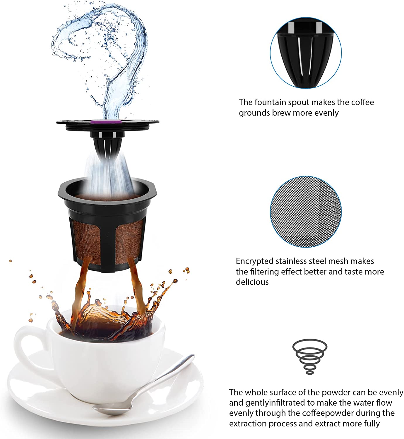 ★[Easy to Use and Clean] : Reusable K CUP are very easy to use, just fill the coffee grounds you need into the reusable K CUP, after using, just dump the grounds into the trash and wash the reusable K CUP filter by water. Also these refillable single K CUP are safe for dishwasher