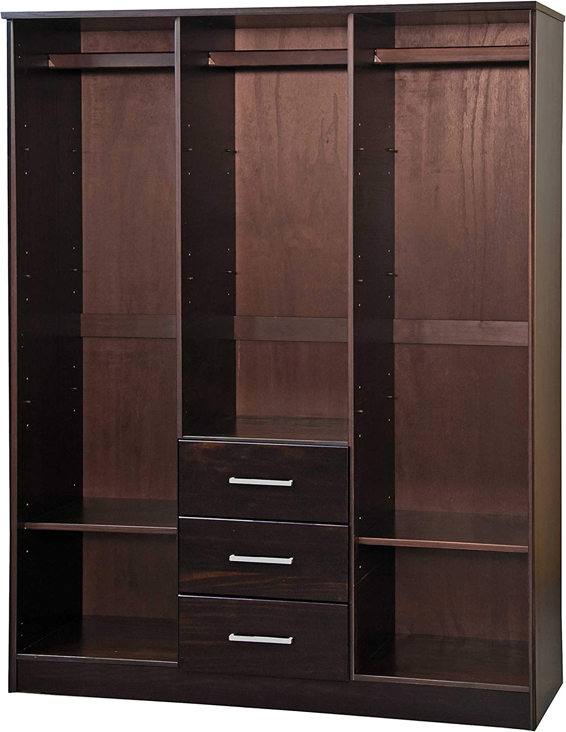 Palace Imports Cosmo Solid Wood 3-Door Wardrobe with Mirror and 3 Drawers, White. Additional Shelves Sold Separately.