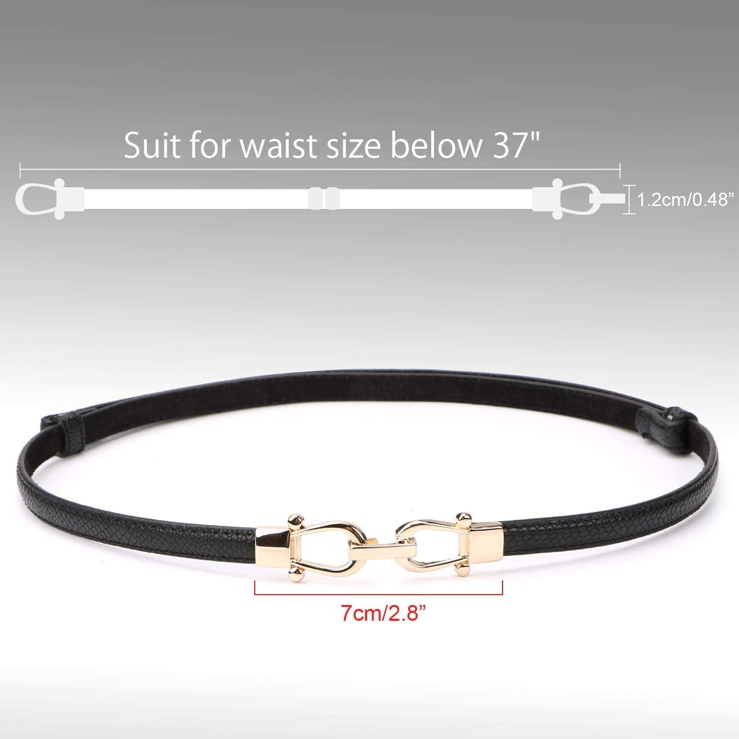 ▶SIZE INFO--- This leather skinny belt is fully adjustable.Perfect for waist size below 37",belt width 0.48";Buckle length: 2.8",buckle width: 0.72".(Consider about 2cm error)