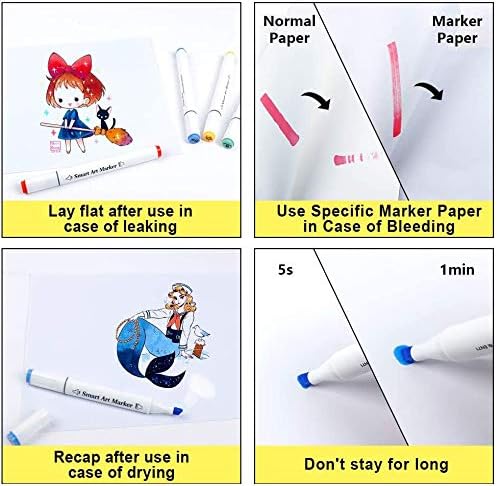 Round Barrels Are Flexible To Hold And Never Bring You Fatigue! The Colors Are Vibrant And Well Pigmented With Numbers On The End Of The Markers. Non-Toxic and Won’t Skip. The tip of the marker pen should not stay on the paper too long, otherwise the ink will come out. Markers needs to write on a specific marker paper or thick paper at least so that it doesn't penetrate to the next layer.