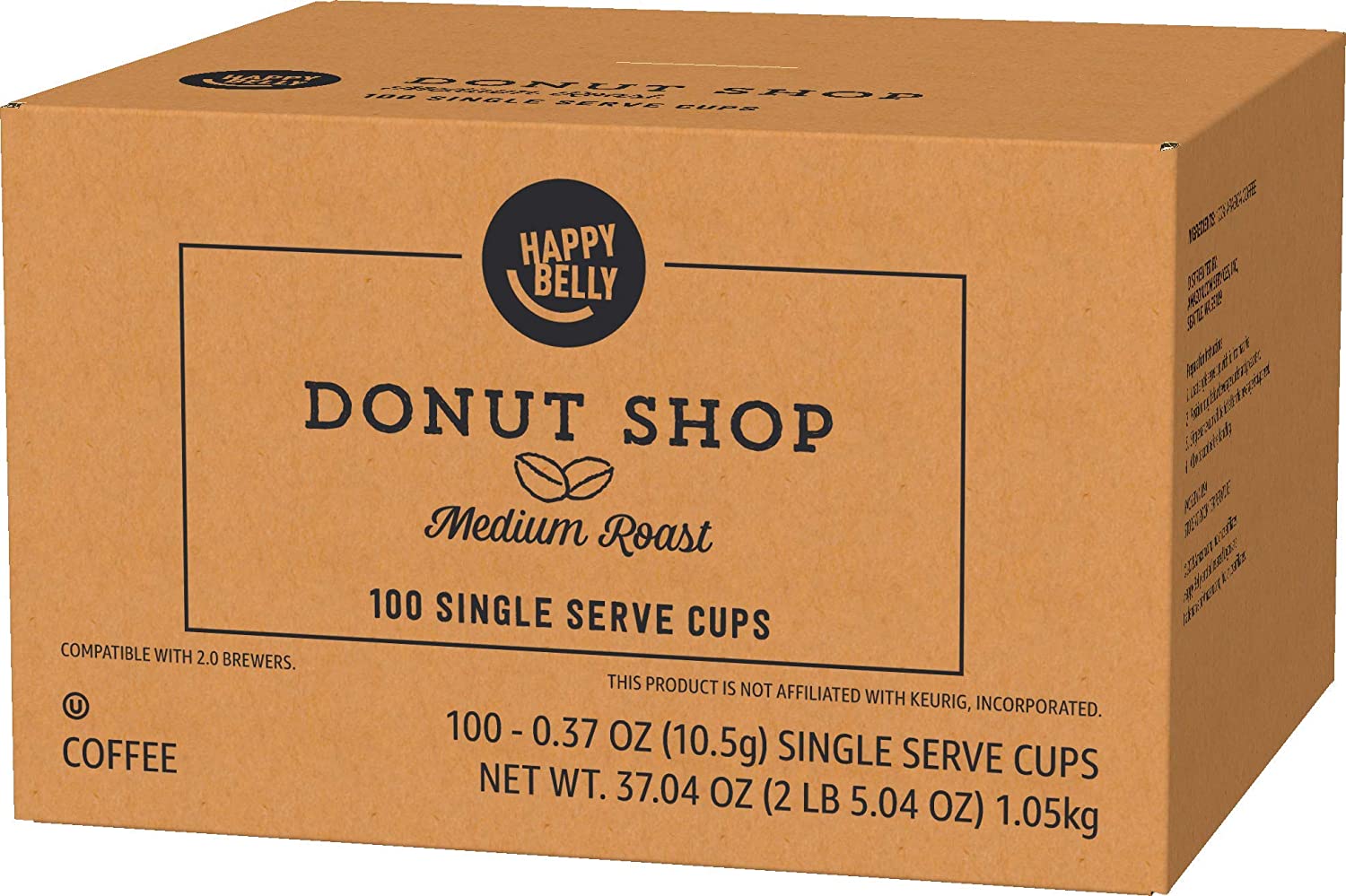 Amazon Brand - Happy Belly Medium-Light Roast Coffee Pods, Donut Style, Compatible with Keurig 2.0 K-Cup Brewers