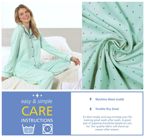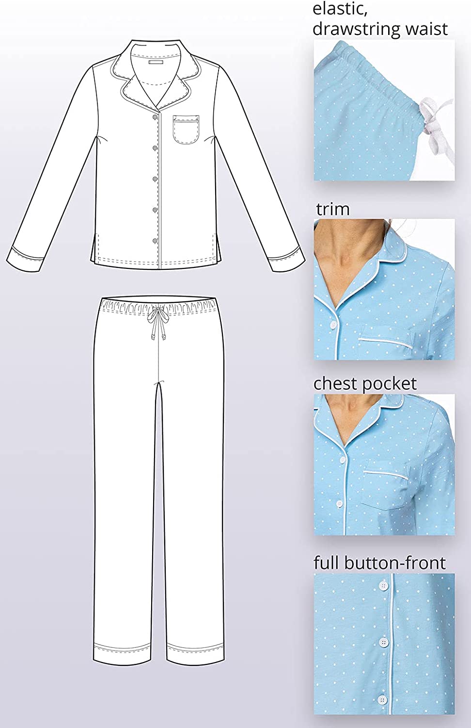 Premium Quality - Luxuriously soft, slightly stretchy, perfectly lightweight; this stunning, designed by sleepwear experts Women’s pajama set is crafted of a high-quality, durable, double-brushed cotton jersey fabric that offers ideal, season after season, touchable coziness. Wear it and love it for years to come.