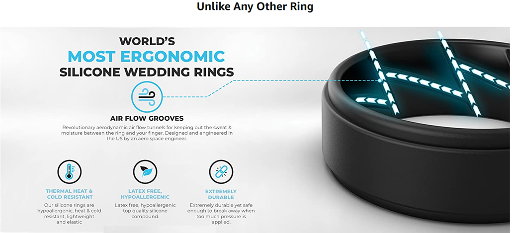 TOP GRADE, HYPOALLERGENIC, FLEXIBLE SILICONE – Durable, yet flexible. Designed to break away when too much pressure is applied. The flexibility of this ring makes it also perfect for those with large knuckles or temporary swollen fingers.