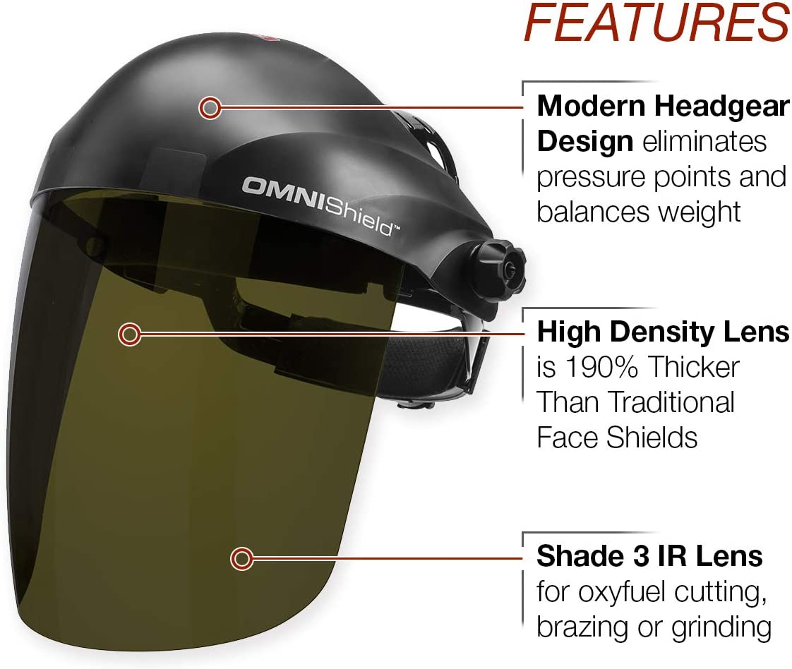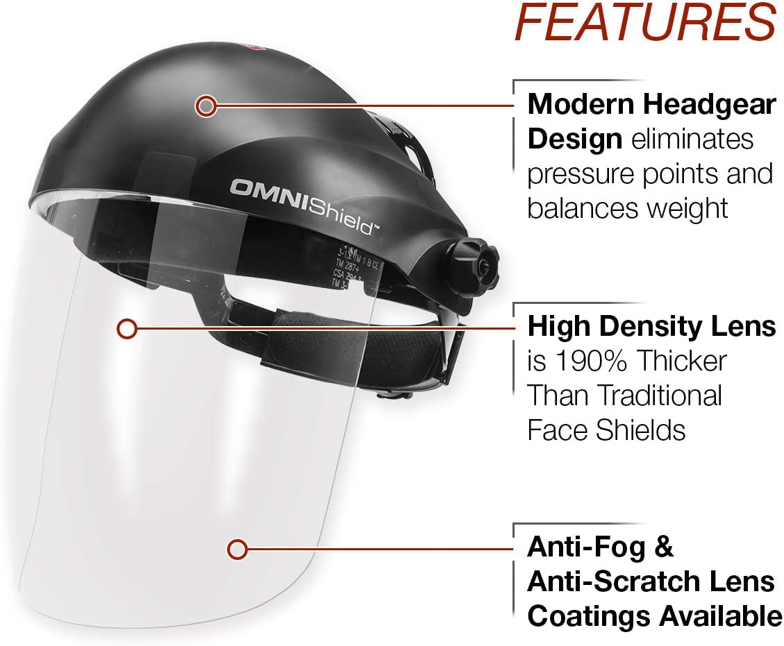 IMPACT PROTECTION - High density clear polycarbonate lens is 190% thicker than a standard face shield (0. 077" vs 0. 040") for enhanced protection.