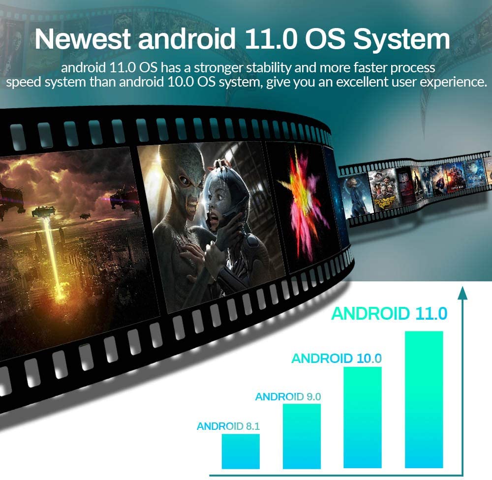 【Newest Android 11.0 OS】Android tv box equipped with Latest Android system, powered by RK3318 Quad core cortex-A53 Ultra high frequence CPU, which ensure the android box running stable and smooth for loading movies, pictures and games without buffer.