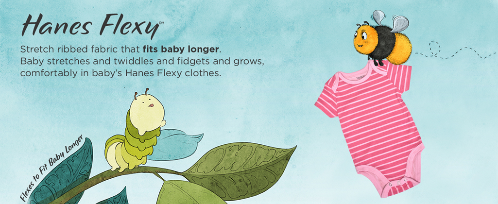 - HANES FLEXY - Total comfort from head to sweet little toes as your baby stretches and twiddles and fidgets and grows.