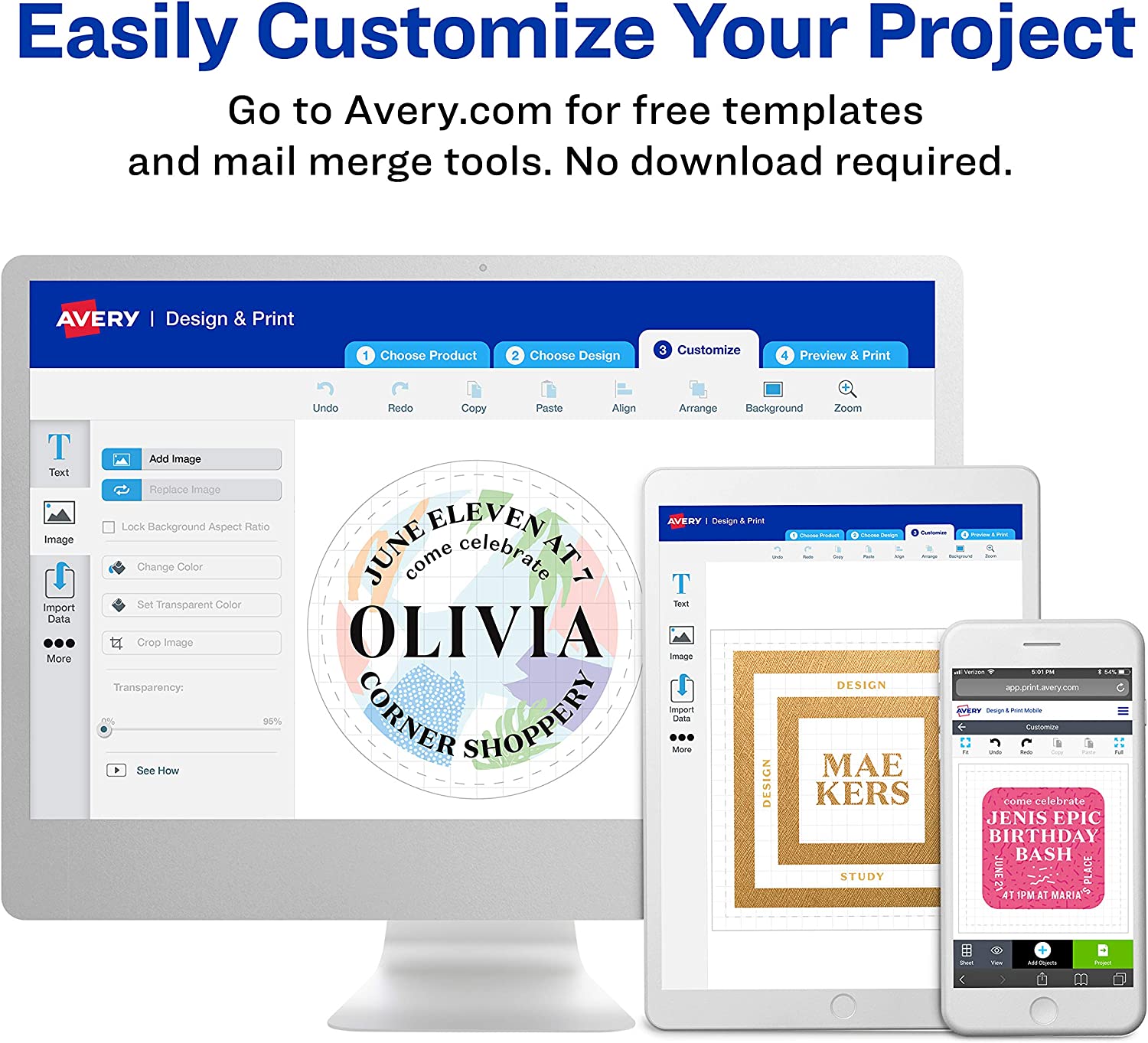 Easily create and apply custom decals with no damage to walls using our Surface Safe™ Printable Decal Stickers. The specially designed Surface Safe adhesive sticks securely to painted walls, drywall, metal and glass and removes cleanly without any residue or damage to surfaces. Great for printing personalized stickers and decals for lockers, classroom decorations, special events and more. The decals are made to last with durable polyester material that resists water, wear and tear. Compatible with popular electronic cutting machines. Easily customize your decals with free templates and designs on the Avery site.