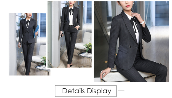 【Top】-Fashion notched lapel,and thick shoulder pads.Exquisite and stick double closure fasten the suit.Practical front pockets with covered placket.Simple long sleeve cuffs design,unique strip pattern design,waisted,regular and neat blazer hem,single-breasted button vest.