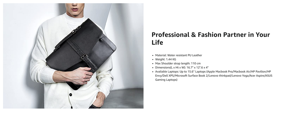 - Design Decency: This Estarer vegan leather (PU leather) briefcase is designed by our professional designers which sets you apart and outstandingly positioned in the crowd, makes you stand out as an organized person.