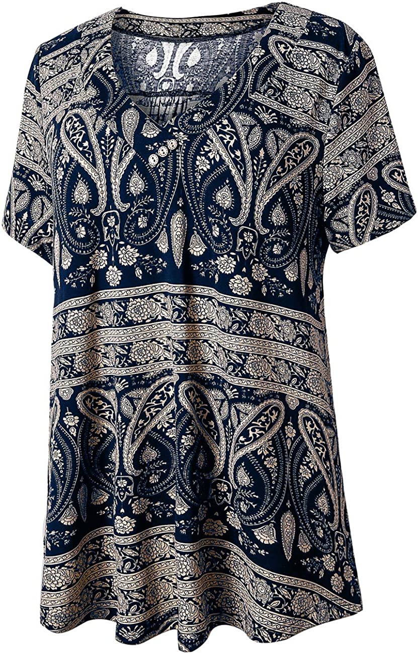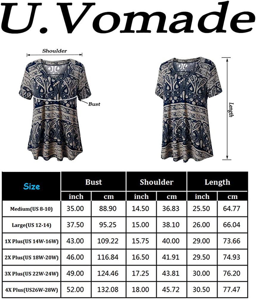 U.Vomade Women's Plus Size Tops Short Sleeve Blouses Flowy Summer Tunic Tops M-4X