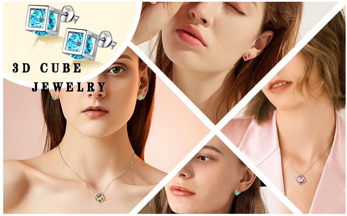 Birthstone Necklace/Earring 925 Sterling Silver Women Cross/3D Cube/Cresent Moon Birth Stone Jewelry Mens Birthday Gift Anniversary Present