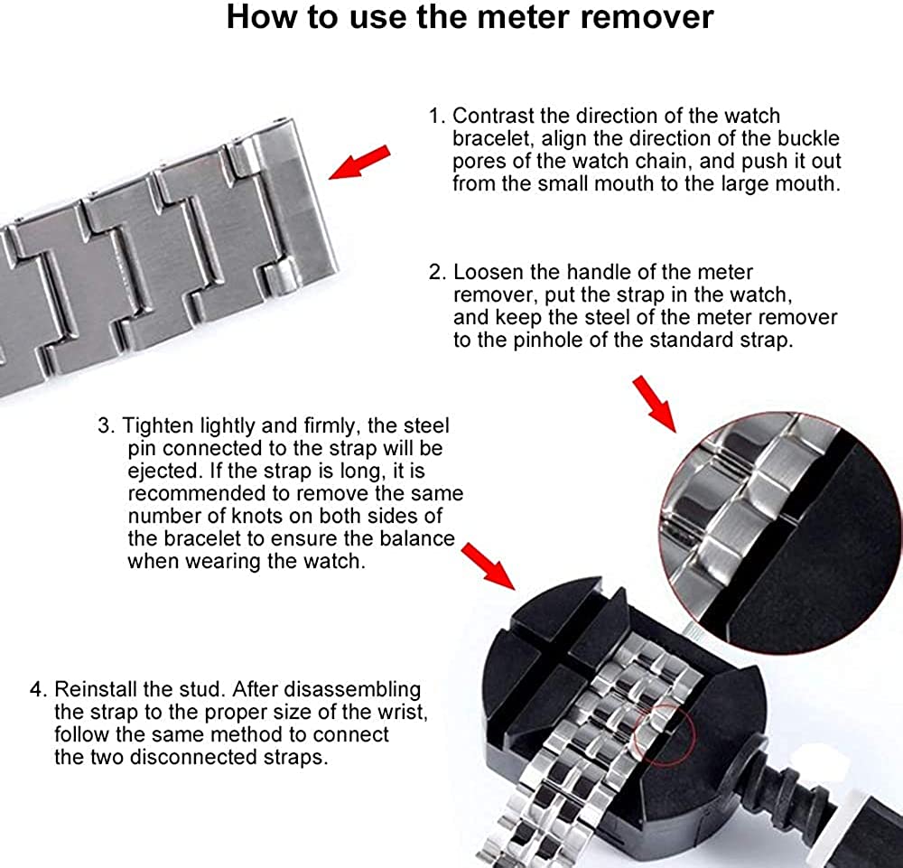 1. Contrast the direction of the watch bracelet, align the direction of the buckle pores of the watch chain, and push it out from the small mouth to the large mouth.