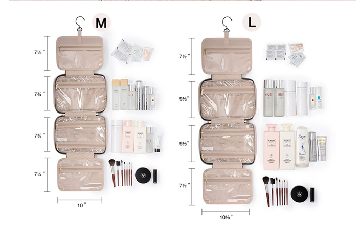• Special Design - Inner main pockets with elastic straps hold bottles upright; Double zipper compartment for easy access the items even not full-opened the bag; Transparent sides for providing clear overview of contents.