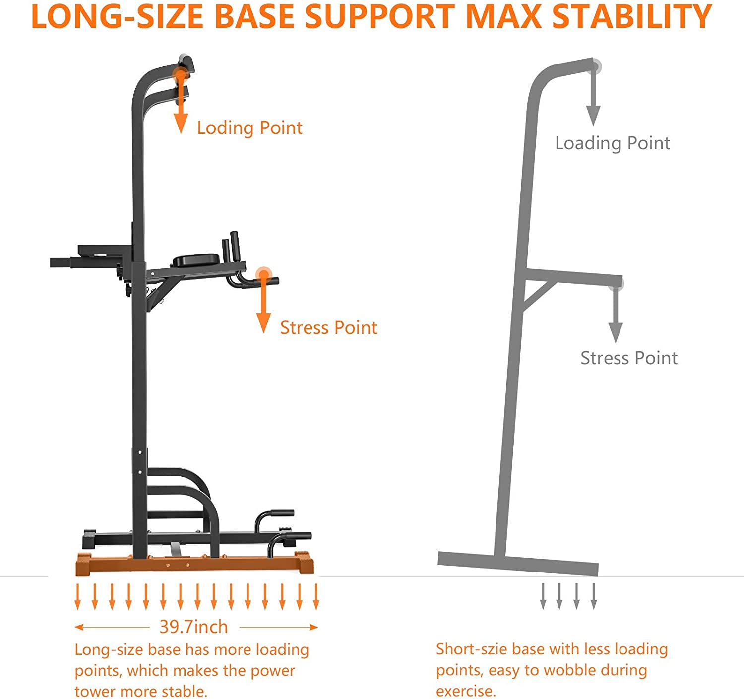 - 【Sturdy Construction】Comes with a 14-gauge heavy square steel frame constructed with scratch-resistant coat finish, our power tower can hold riders weight up to 400lbs and withstand long term use.