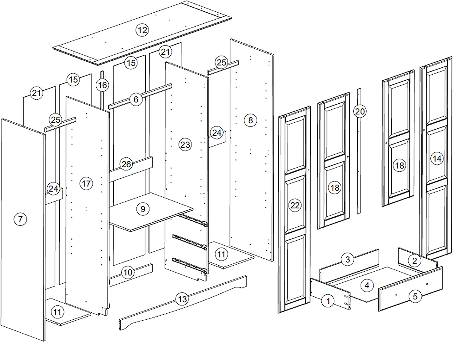Palace Imports 100% Solid Wood Family Wardrobe/Armoire/Closet, White. 3 Clothing Rods Included. NO Shelves Included. Optional Shelves Sold Separately. 60.25" w x 72" h x 20.75" d