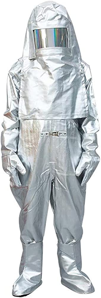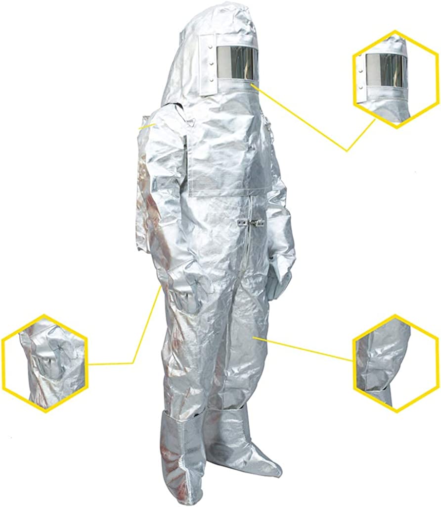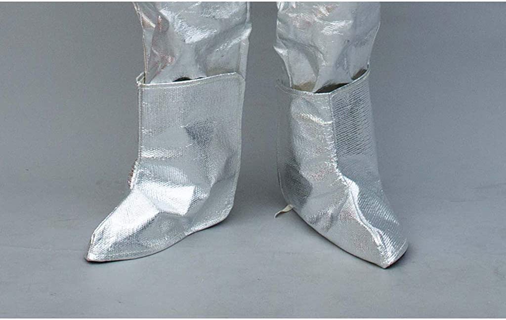 【Material】This fireproof heat resistant suit is made of heat-resistant aluminum foil composite fireproof fabric and pure cotton lining, and sewing from aramid high temperature resistant flame retardant thread. Foot covers, made of flame retardant fabric and vacuum coated material.