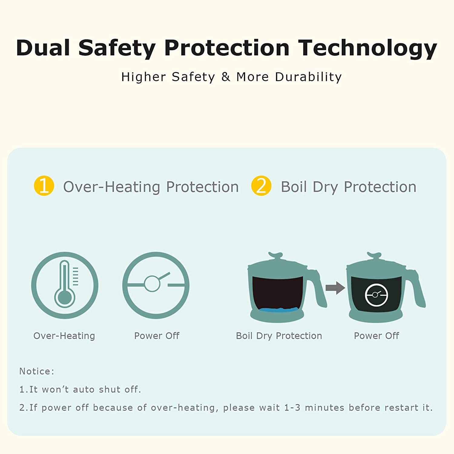 [Detachable design & Higher Safety] - The detachable structure design means that you can place the pot in any direction and it’s easy for cleaning. Equipped with 360° rotating base and can wrap the power cord around in that. Also it has over-heating protection and boil dry protection technology, ensure safety and durability.