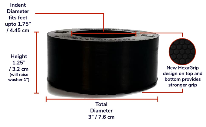- ? YOU'LL NEVER HAVE TO PUSH YOUR WASHER BACK INTO PLACE ? Our innovative Dual HexaGrip design provides stronger traction from the top & bottom of each pad, preventing your vibrating washer from walking, skidding & moving; Our grip technology provides up to 60% more pad surface area in direct contact with your floor, significantly increasing floor friction compared to similar pads; Our unique top side grip provides extra hold on the feet of your appliance, further minimizing movement & shaking