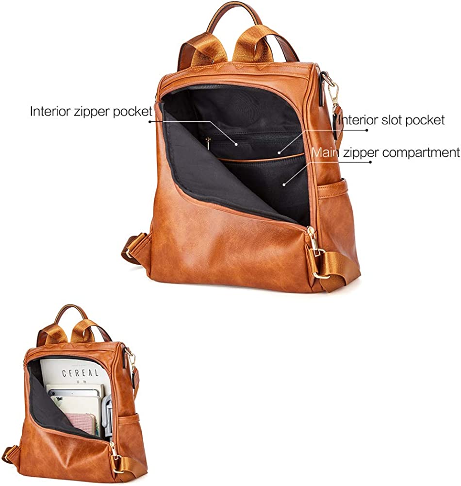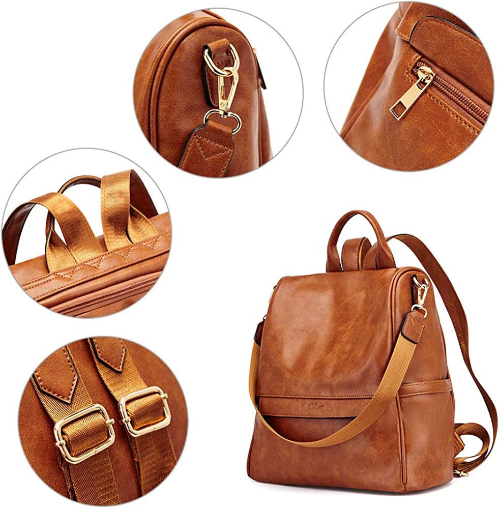 [HIGH-QUALITY MATERIAL]: Warm Tip: This backpacks made of oil wax material looks brighter, under different lighting condition, sometimes it feels shiny. This women backpack purse is made of high quality water resistant soft PU leather, metal accessories and fabric lining, which is fashionable and durable.Detachable shoulder strap made of canvas for reinforcement and durability.