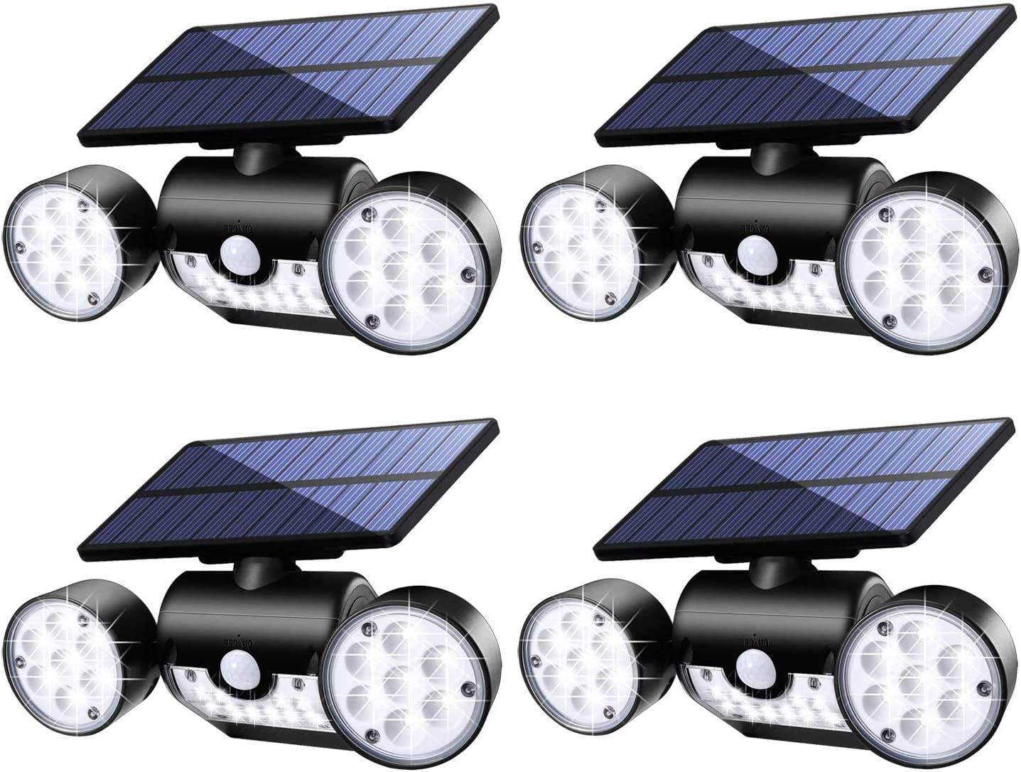 Fatpoom Solar Lights Outdoor 30 LED Solar Security Light with Motion Sensor Dual Head Spotlights IP65 Waterproof 360° Adjustable LED Solar Motion Lights for Front Door Garage Patio Deck (2 Pack)