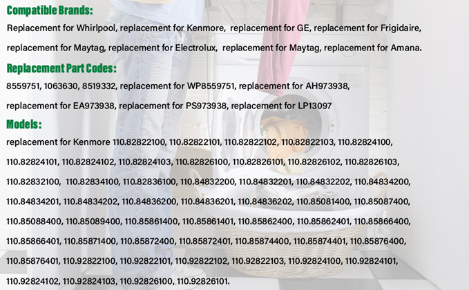 - Compatible Brands: Suitable for most famous brands (replacement for Whirlpool, replacement for Kenmore, replacement for GE, replacement for Frigidaire, replacement for Maytag, replacement for Electrolux, replacement for Maytag Amana)