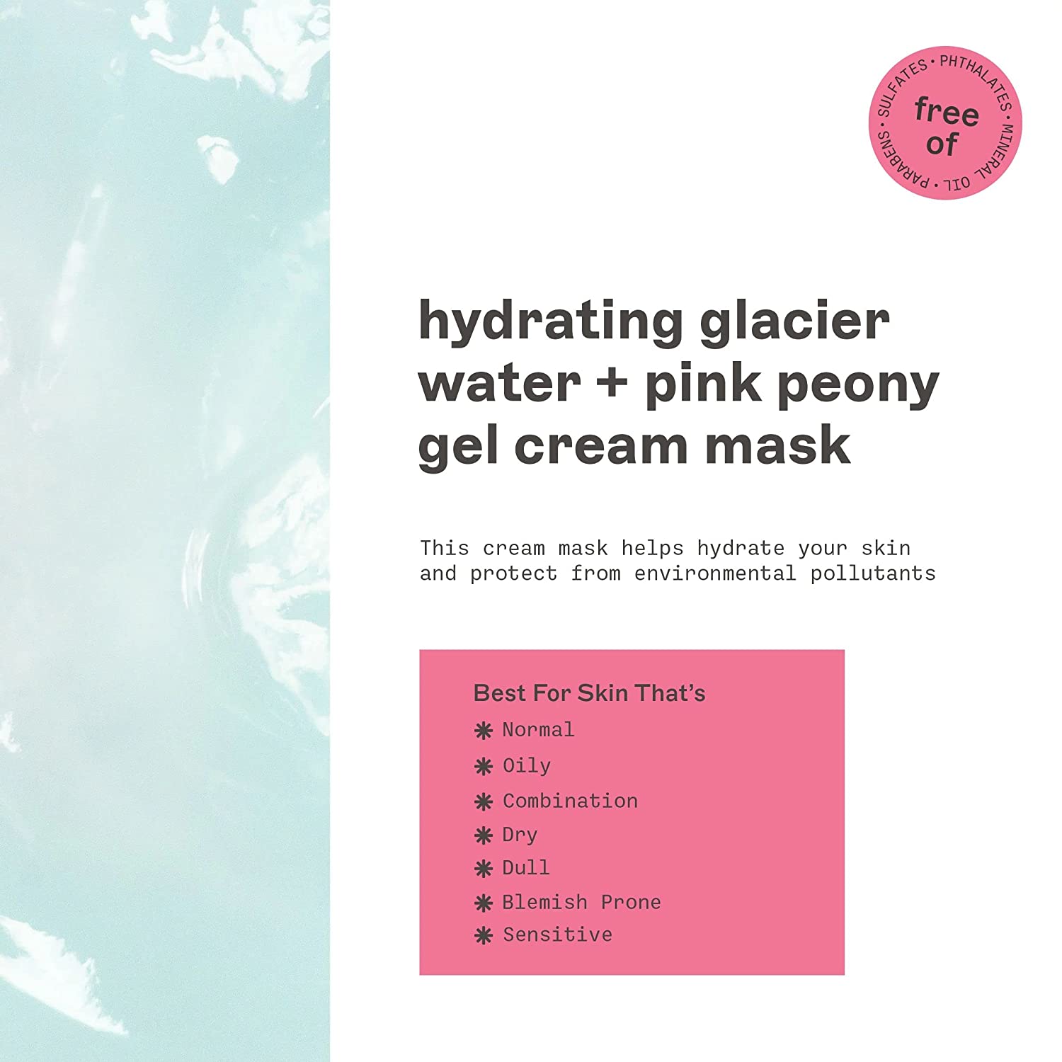 Hydrating Glacier Water + Pink Peony Gel Cream Mask leave on mask instantly calms and softens for glowing skin