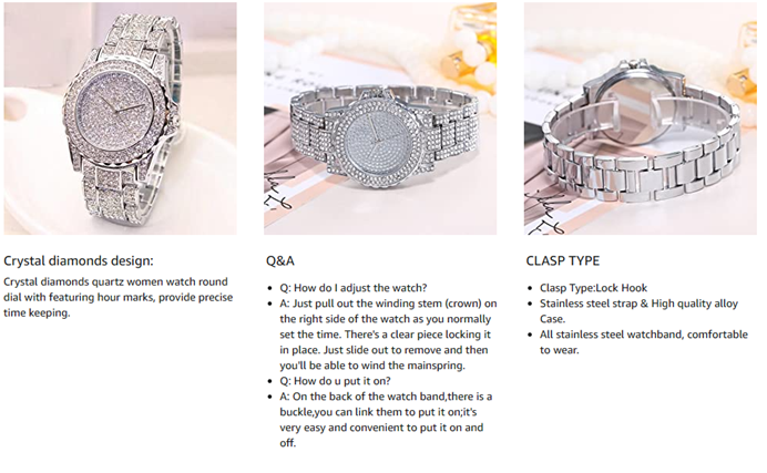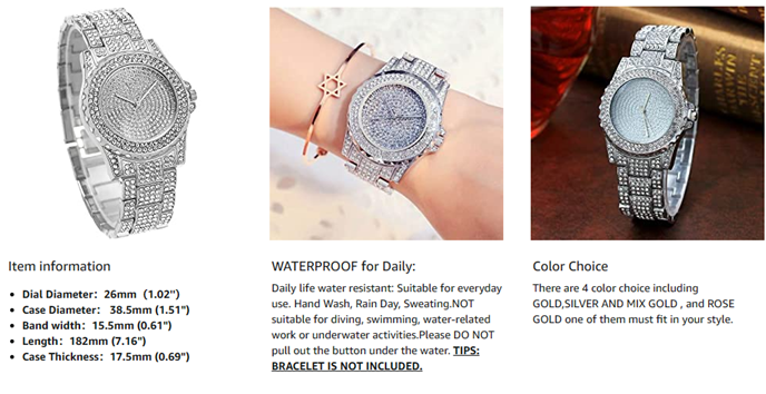 Special featuressilver watch for women, watches for women, lady watch, bling watch, diamond watch for women