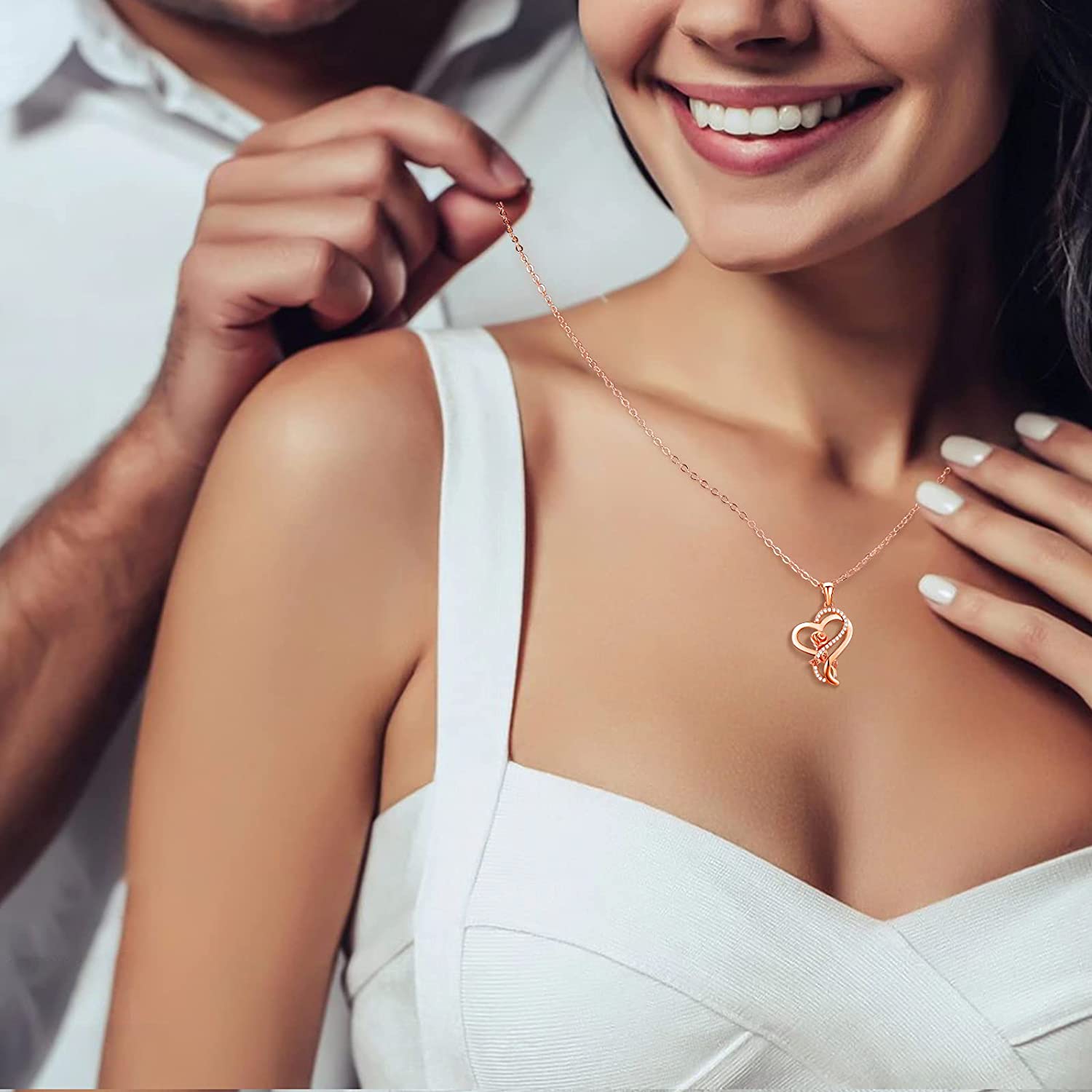 • ?GIFT PACKAGE❤️Heart Rose Neckless Pretty Gift box, Thank You Card,Silverware polishing cloth,and ready for giving. Makes a Sentimental Surprise for Any Awesome lady,We also have the best gift ideas for wife or girlfriend on christmas anniversary or birthday.