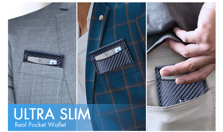 ULTRA SLIM & MULTIFUNCTIONAL - Best slim wallet that measures only 3.9"x2.76"x0.34". A men’s wallet with enough room for essential cards and cash without being bulky. Front pocket for the most used cards for quick access. Outside pocket for ID cards so you don’t have to open the whole wallet