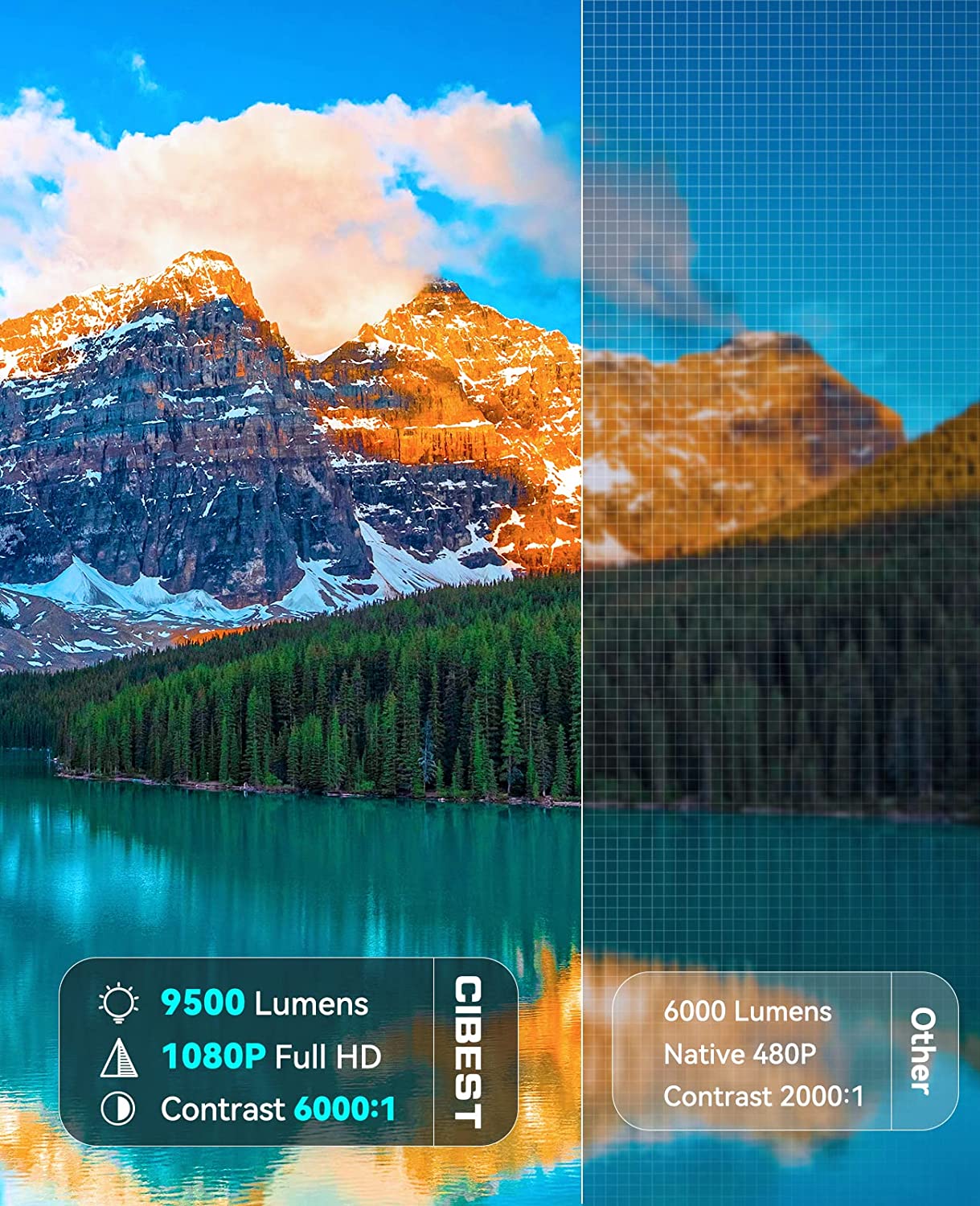 【 INCREDIBLE PICTURE QUALITY】Enjoy a superior movie experience with the 2023 Upgraded CiBest mini projector which offers 80% more brightness than other projectors in its price range. With 1080P Full HD and 6000:1 contrast ratio, it delivers an incredibly lifelike image for videos and movies. Plus, the diffuse reflection technology offers a softer projection image that protects your eyes.