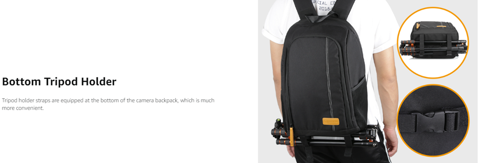 - 【Professional Camera Backpack with 15inch Laptop Compartment】 8 pieces padded removable dividers can be reorganized and offer certain protection for your own camera equipments. Camera tripod can be attached to the bottom of the camera bag. Dedicated 15inch laptop/tablet pocket.