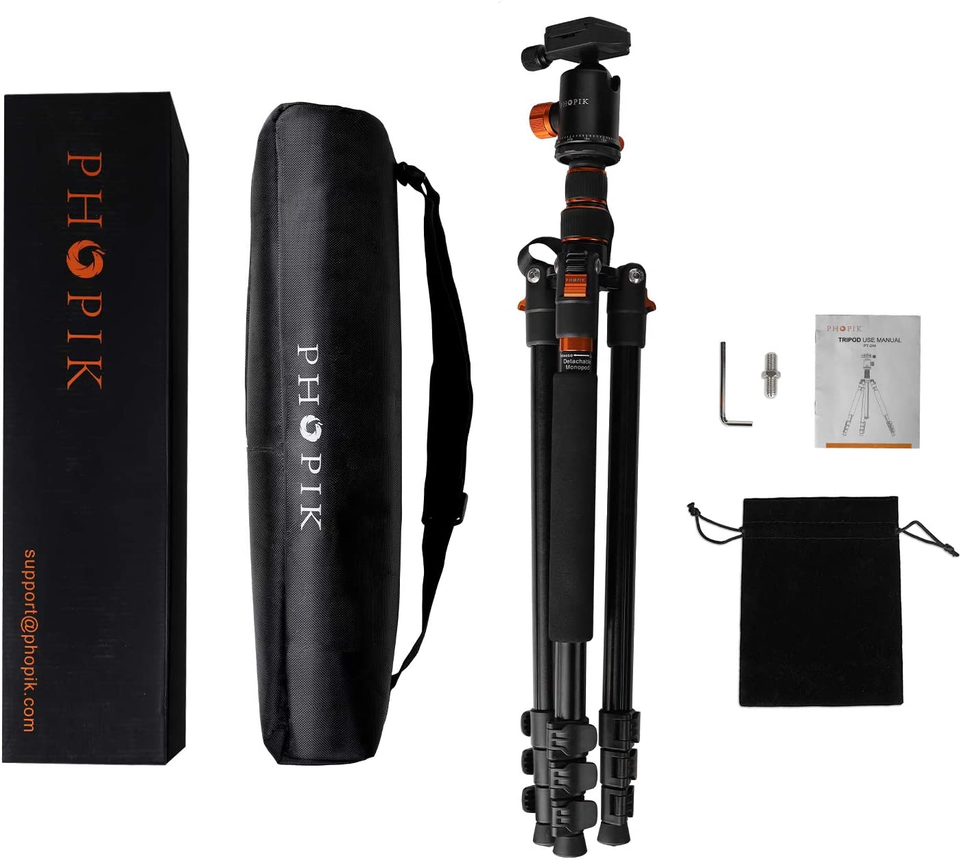 PHOPIK 77" Camera Tripod,Travel Tripod for DSLR,Professional Tripod with 360 Degree Ball Head,Camera Tripods & Monopods with Carry Bag for Camera, Ipad,Phone,Lightweight Load up to 17.6 Pounds