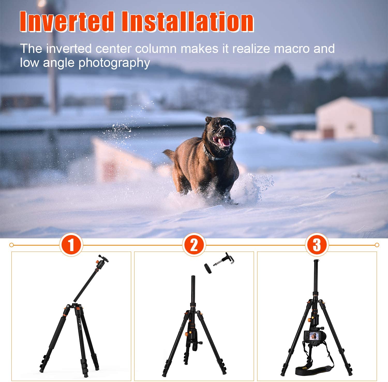 Lightweight and Portable: The tripod can be folded back 180 ° into a compact size of 19", and weighs only 3.75lbs. It comes with an adjustable shoulder bag so you could take it easily anywhere for various photography.