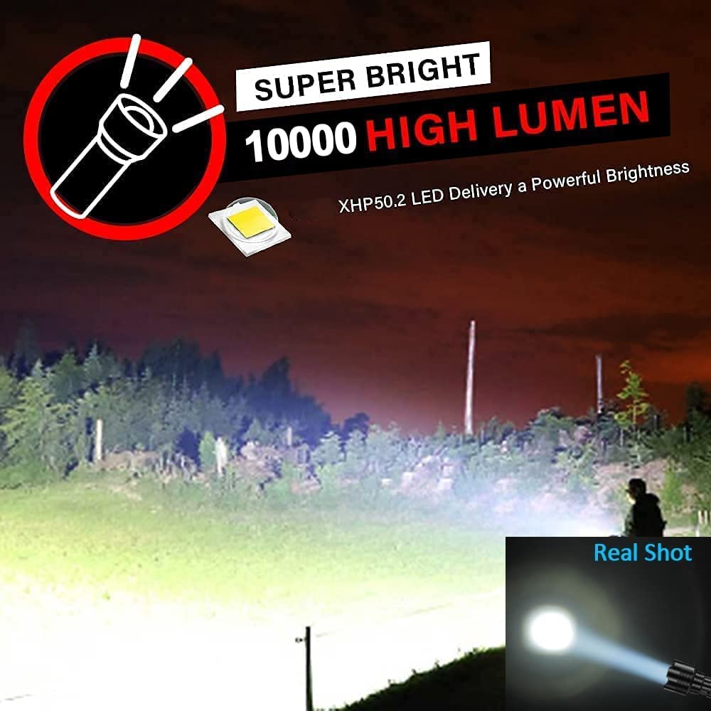 • Super bright LED Rechargeable flashlight, 2000Lumen, 4Modes: Bright Rechargeable Flashlight delivery a high output 2000 Lumen Max that the beam distance can be up to 600ft, zoomable function help this Magnetic LED Flashlight can be fully zoomable from large area floodlight to focused spotlight; Tactical Flashlight have 4 Modes:High / Low / COB SOS/ COB sidelight modes ,SOS mode keep you always safe in any emergency situation.