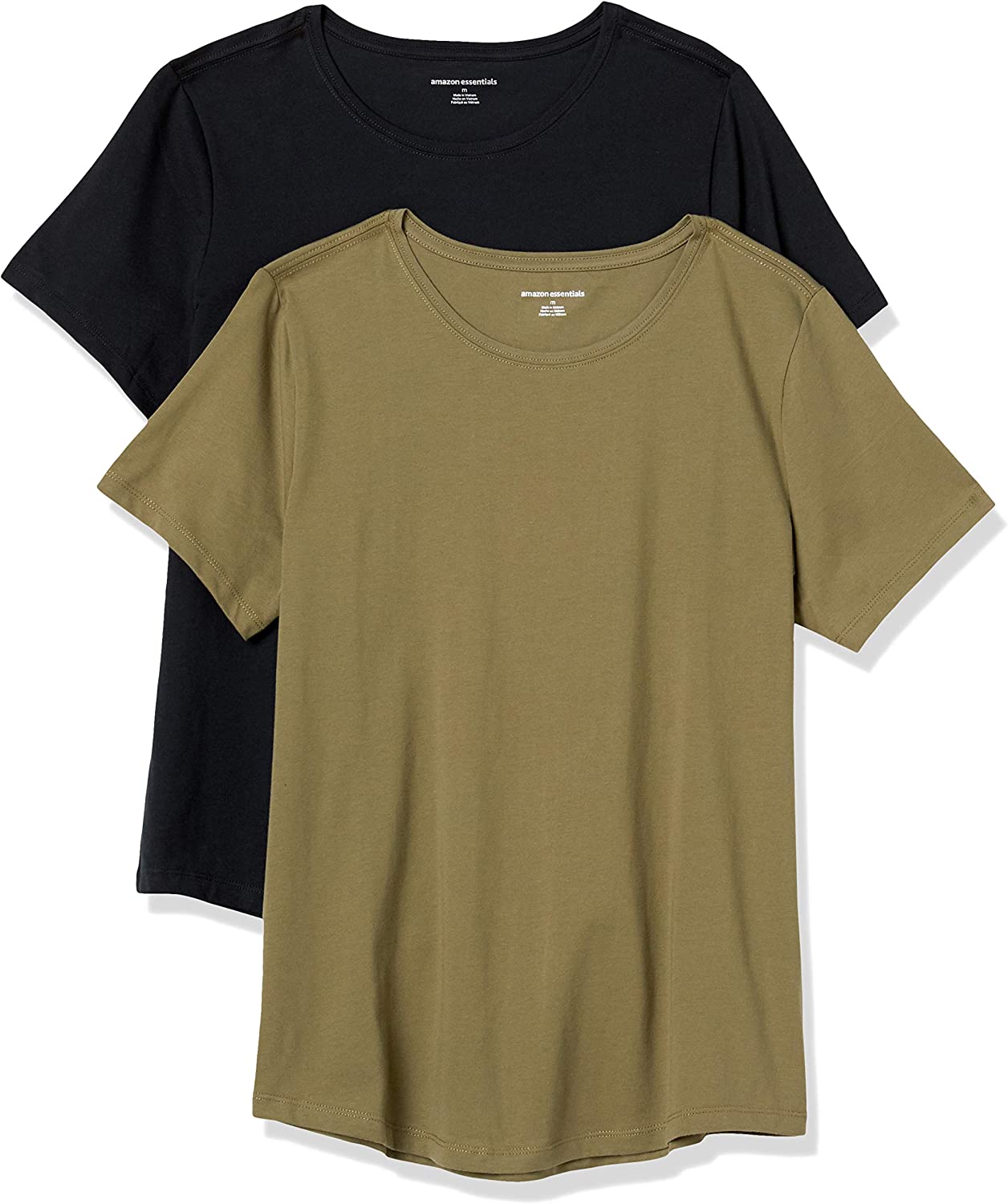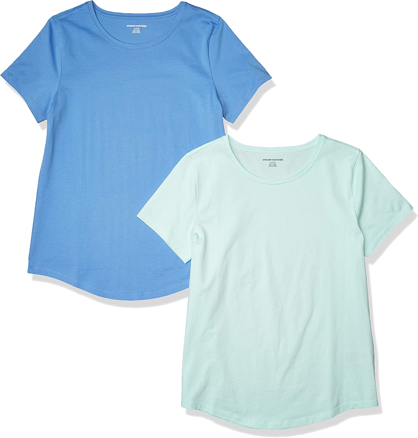 Amazon Essentials Women's Classic-Fit 100% Cotton Short-Sleeve Crewneck T-Shirt (Available in Plus Size), Pack of 2