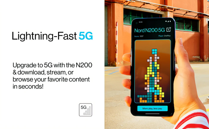 - 4GB RAM + 64GB built-in storage (expandable up to 256GB) - The OnePlus Nord N200 5G packs all the performance power and storage you’ll need to run and store your favorite content. 4GB of RAM ensures your applications and content run smoothly, making for a seamless, customizable, and enjoyable mobile experience. The 64GB of built-in storage ensures you can have all your favorite films, TV shows, games, and photos with you on the go. Need more storage? Expand it by up to 256GB with a microSD card.
