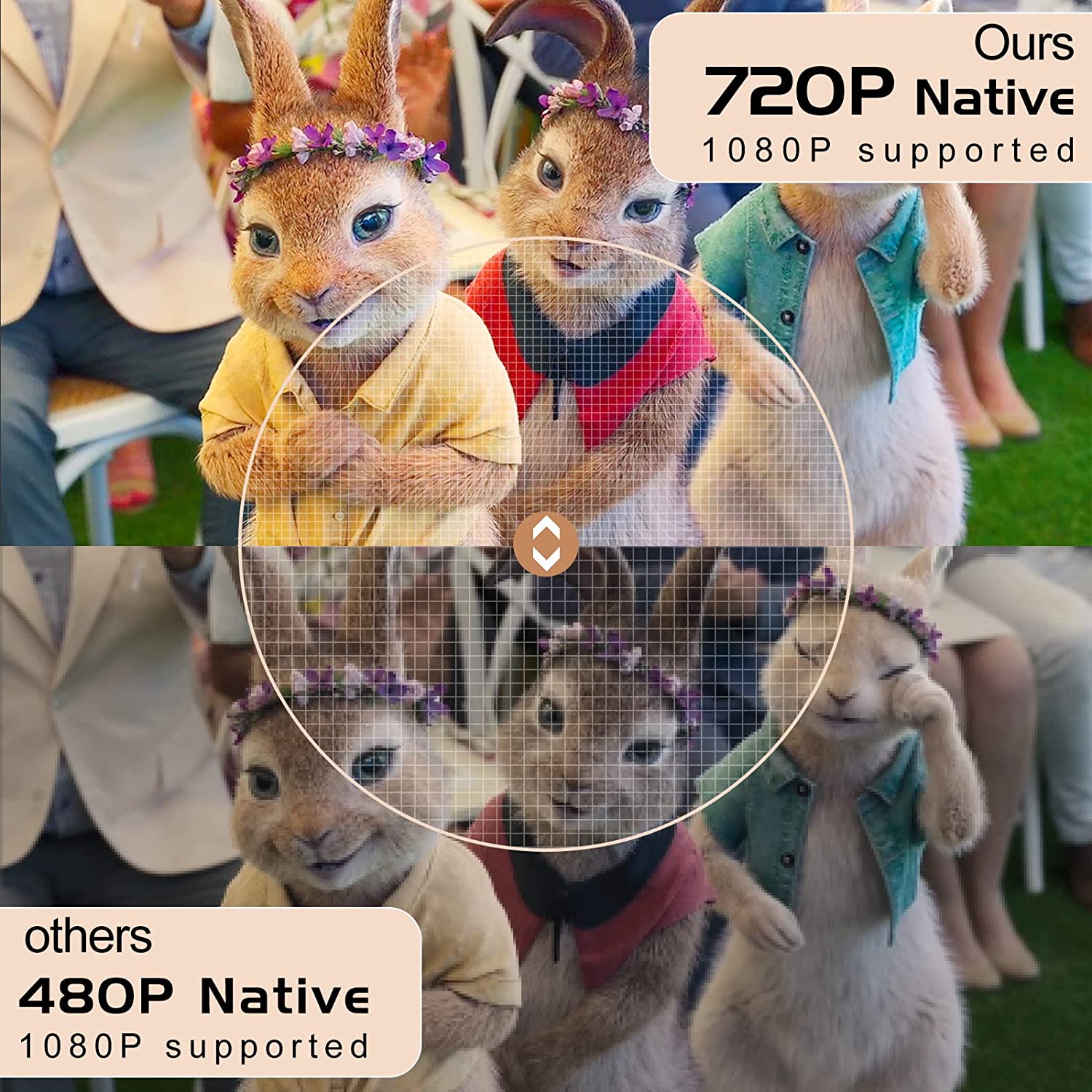 Built-in 4 inch LCD lens, with the max 176'' projection size, 1280*720 Native Resolution, 1920*1080 MAX Supported Resolution and 5000:1 Contrast Ratio, a clearer display will be achieved. 4:3/16:9 Aspect Ratio also provides a large visual field. Besides, you can also adjust the clearness through the keystone and focus.