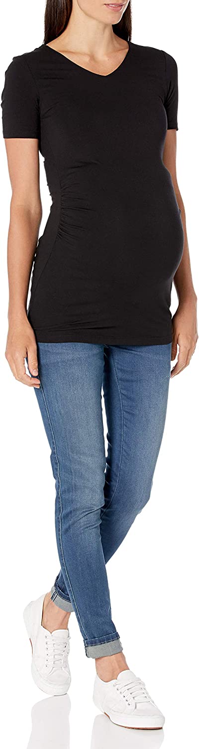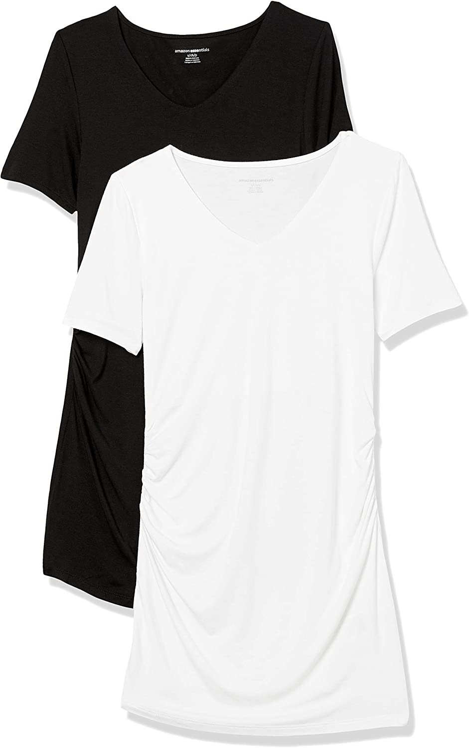 Amazon Essentials Women's Maternity Short-Sleeve Rouched V-Neck T-Shirt, Pack of 2