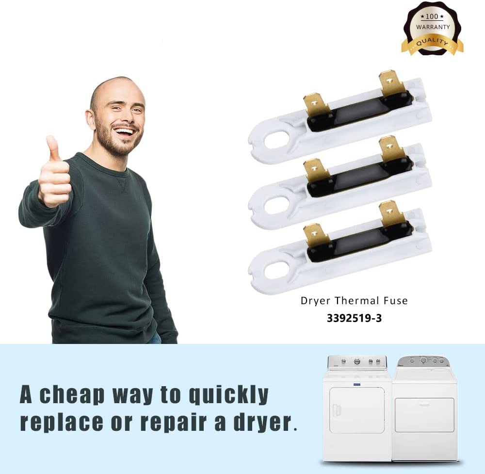 3392519 Dryer Thermal Fuse (3 Pack) Replacement for Whirlpool WP3392519 Replaces Part # AP6008325 3388651 694511