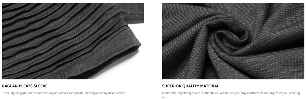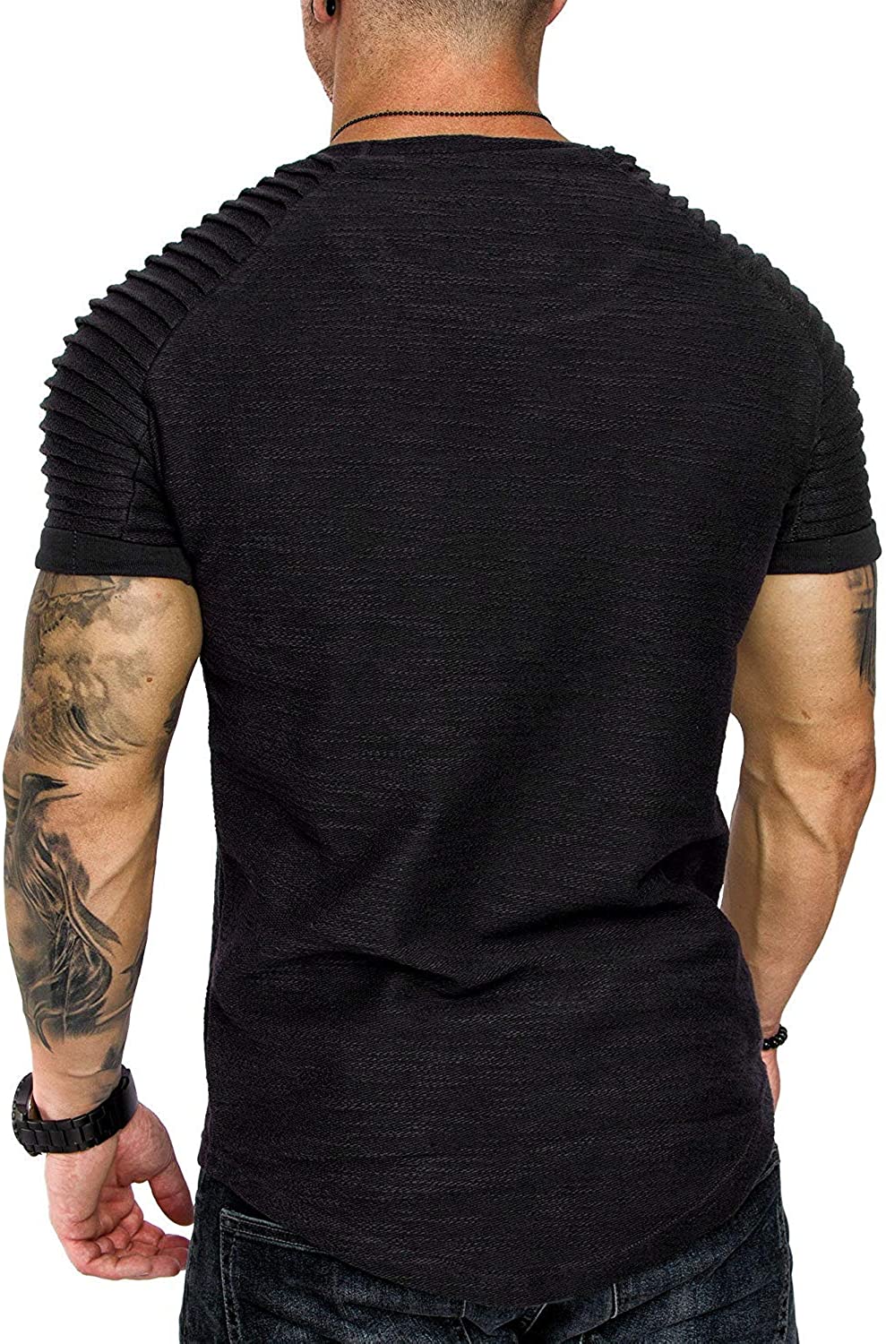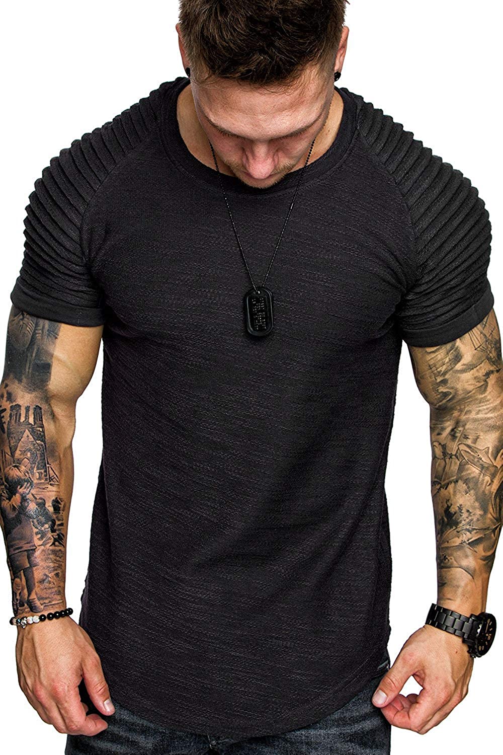 RAGLAN PLEATED SLEEVE - These comfortable gym t-shirts combine raglan sleeves with pleats, creating a trendy mixed effect! The pleated raglan sleeves give the illusion of a stronger upper body.