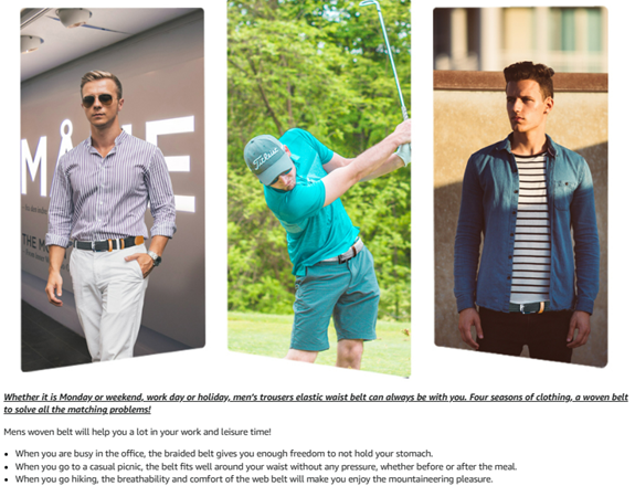 Q: What material is used for the web belt? A: The mens belt is made of stretchy elastic fabric, the loop and the belt end is made of PU leather. Buckle is heavy weight and attractive, used nickel-alloy metal. The seller give each elastic belt an extra belt loop as a small gift,which you can use it to hold the extra strap in place.