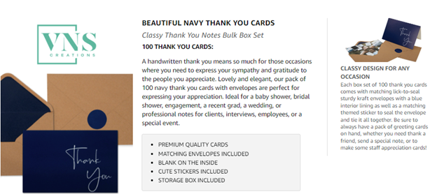 - ✔️ CLASSY DESIGN FOR ANY OCCASION: Each box set of 100 thank you cards come with matching lick-to-seal sturdy kraft envelopes with a blue interior lining as well as a matching themed sticker to seal the envelope and tie it all together. Be sure to always have a pack of greeting cards on hand, whether you need to thank a friend, send a special note, or make some staff appreciation cards!