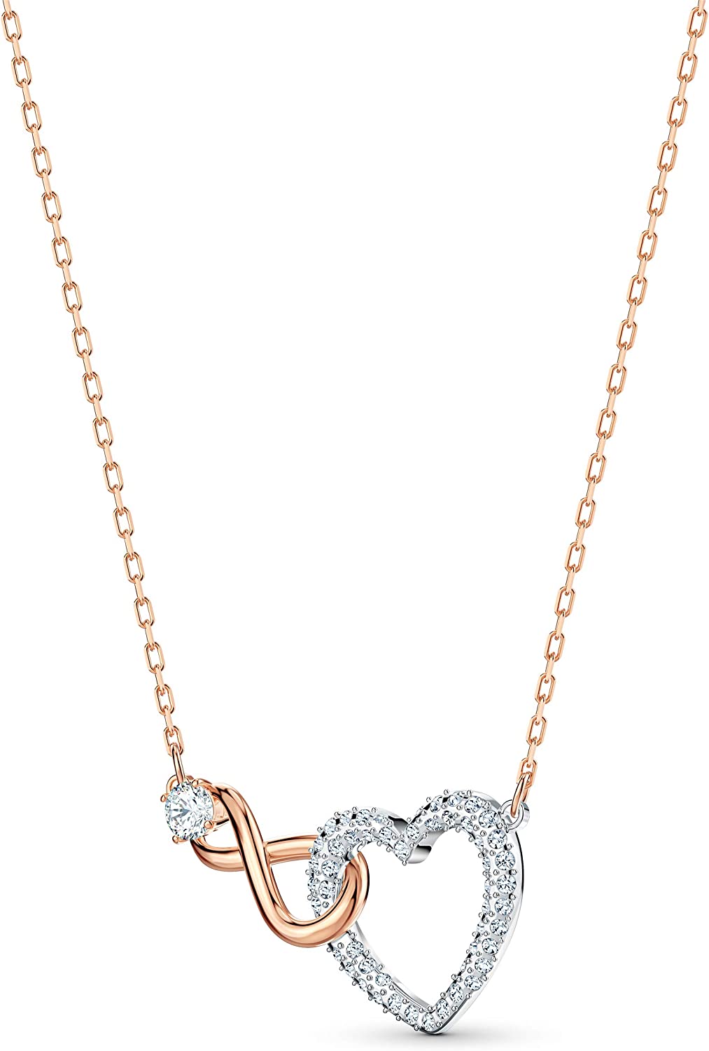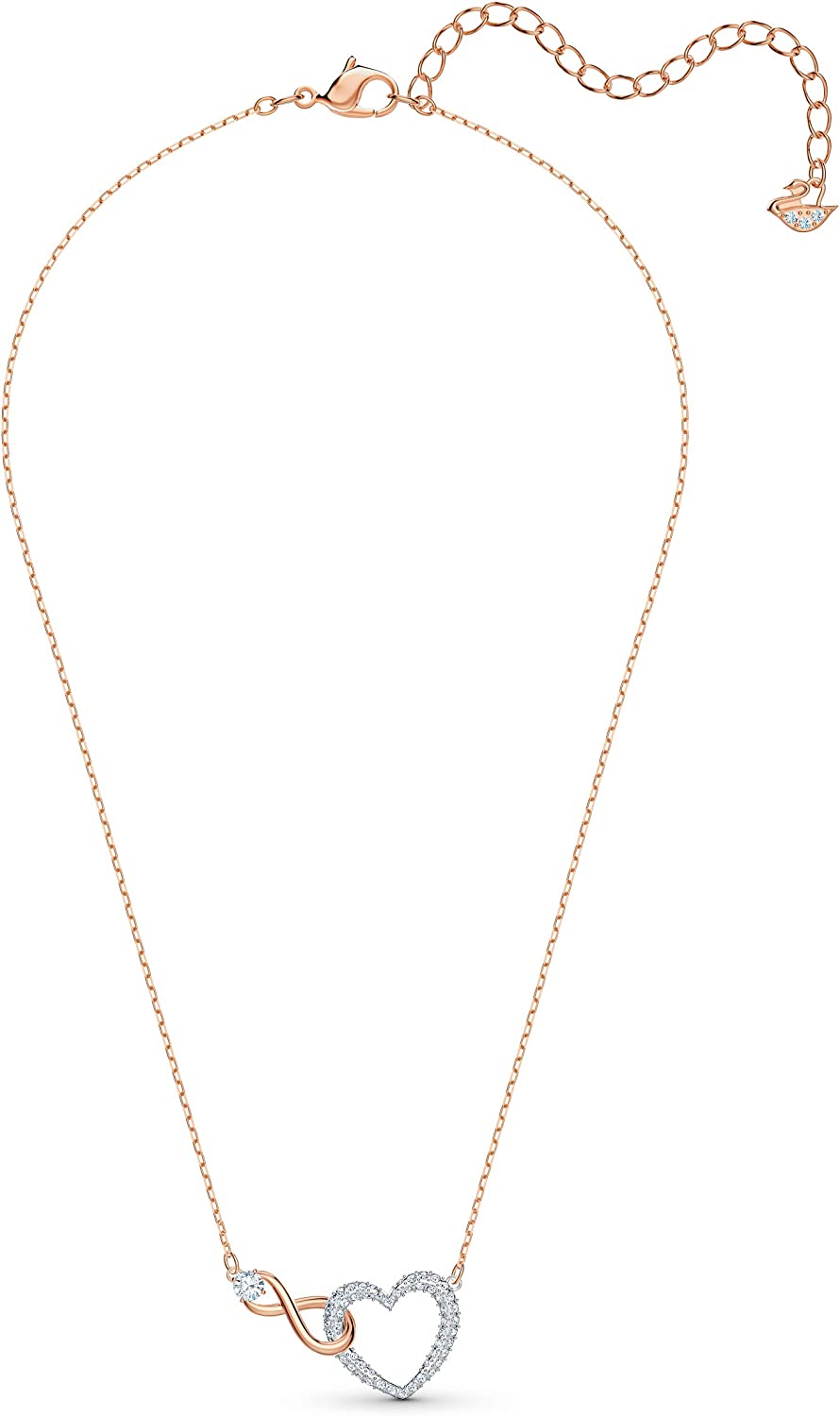 Items delivered: 1 x Swarovski Infinity Heart mixed metal pendant necklace with a 14 7/8 inch adjustable chain, 1 x 5/8 x 1/8 inch Infinity Heart pierced stud earrings, with Swarovski jewelry box