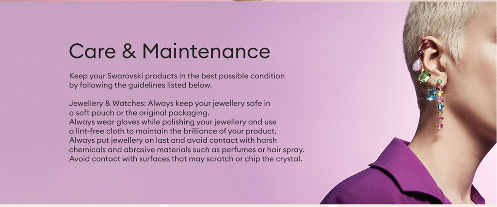 • Designed to last: Swarovski jewelry will maintain its brilliance over time when simple care practices are observed; remove before contact with water, lotions or perfumes to extend your jewelry's life