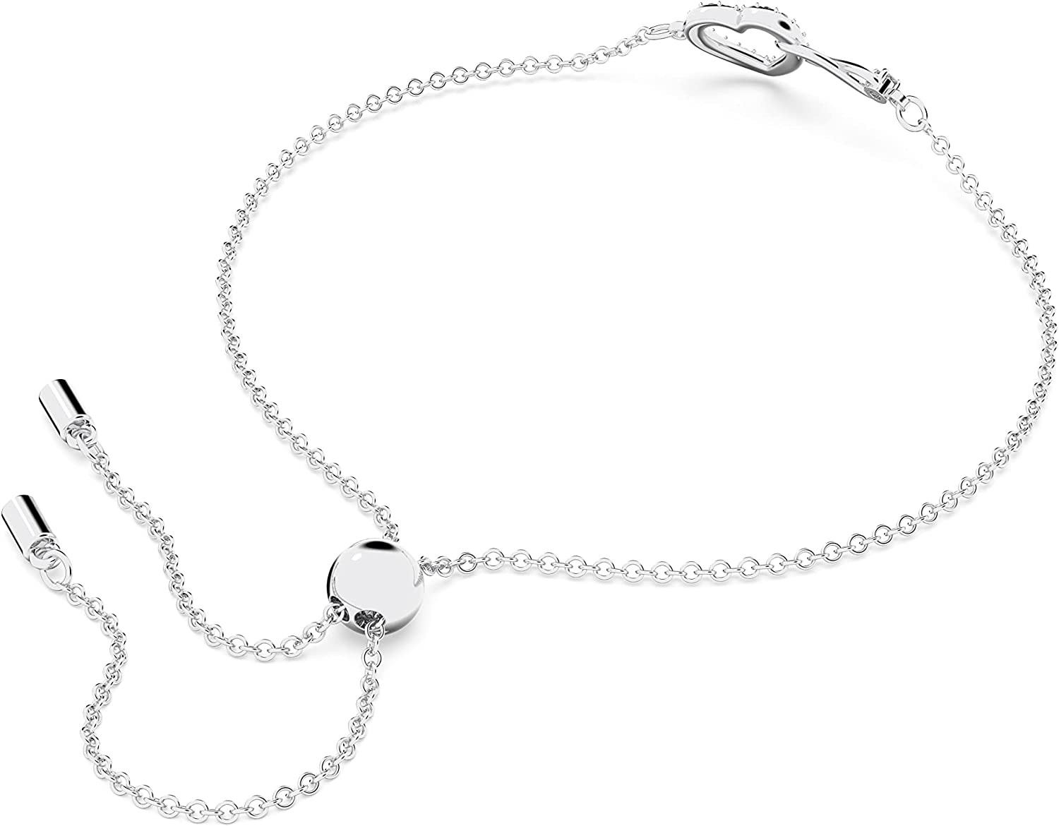 • Items delivered: 1 x Swarovski Infinity bracelet for women, 9 3/8 inch rhodium plated chain, white crystal infinity symbol with crystal pavé heart and simple bolo closure, with Swarovski bracelet box