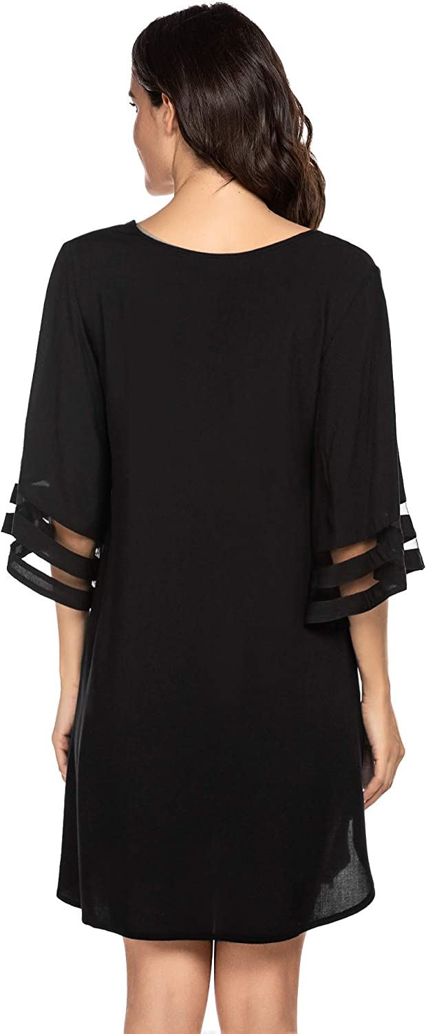 • 【Unique Design】Features the deep v-neck and 3/4 bell sleeve with mesh panel patchwork design, you can easily create a stylish and cute look with a sun hat and sunglasses. Loose-fitting, flowing cover up features bell sleeves with a flounce effect at the cuff for added flair. This knee-length dress will let you enjoy silky smoothness when you're walking.