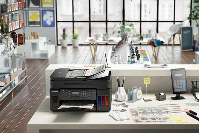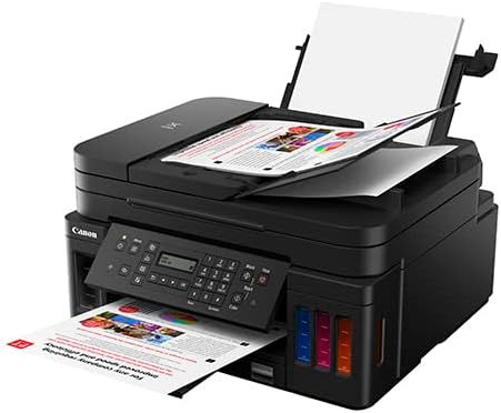Meet the PIXMA GRNUM Wireless MegaTank all-in-one printer - designed for serious print productivity with a high page yield of up to 6 000 pages of Black text or up to 7 700 vivid color pages per full ink bottle set from the reliable refillable ink system. The PIXMA GRNUM MegaTank printer delivers outstanding high yields resulting in a low cost per page and also features superior versatility thanks to an ADF for scanning copying and faxing. The GRNUM allows you to keep working - even on large print jobs - with auto 2-sided document printing borderless2 photo printing and a 350 sheet plain paper capacity connectivity is paramount with the GRNUM featuring Wi-Fi 3 and Ethernet connection when printing from computers and also for mobile printing with airprint 4 Mopria Print Service5 and the Canon Print app6 for even more printer information and control.