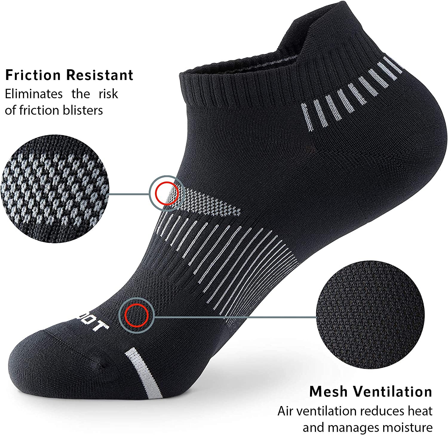 Moisture Wicking Performance; premium materials and specially designed Mesh Ventilation reduce heat and keep your feet cool and dry