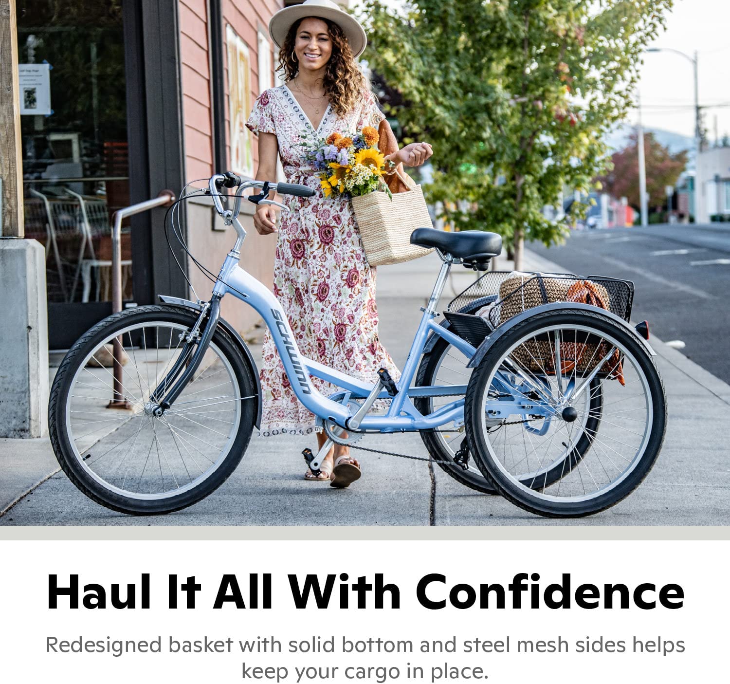 Schwinn Meridian Adult Trike, Three Wheel Cruiser Bike, 7-Speed, 26-Inch Wheels, Cargo Basket, Red