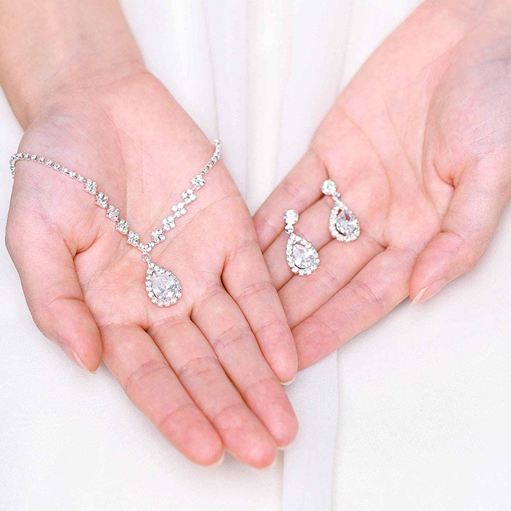 Wedding earrings necklace set fits for wedding, engagements, bridal shower, baby shower, proms, and parties.